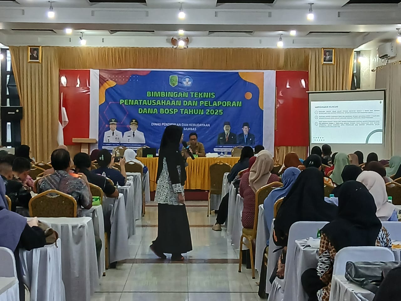 Dinas Pendidikan dan Kebudayaan Kabupaten Sambas menyelenggarakan kegiatan Bimbingan Teknis (Bimtek) Penatausahaan dan Pelaporan Dana BOSP Tahun 2025 di Hotel Pantura Jaya, Sambas. Kegiatan ini bertujuan untuk meningkatkan pemahaman dan kapasitas para pengelola dana Bantuan Operasional Satuan Pendidikan (BOSP) dalam mengelola keuangan sekolah secara transparan, akuntabel, dan sesuai dengan ketentuan yang berlaku.