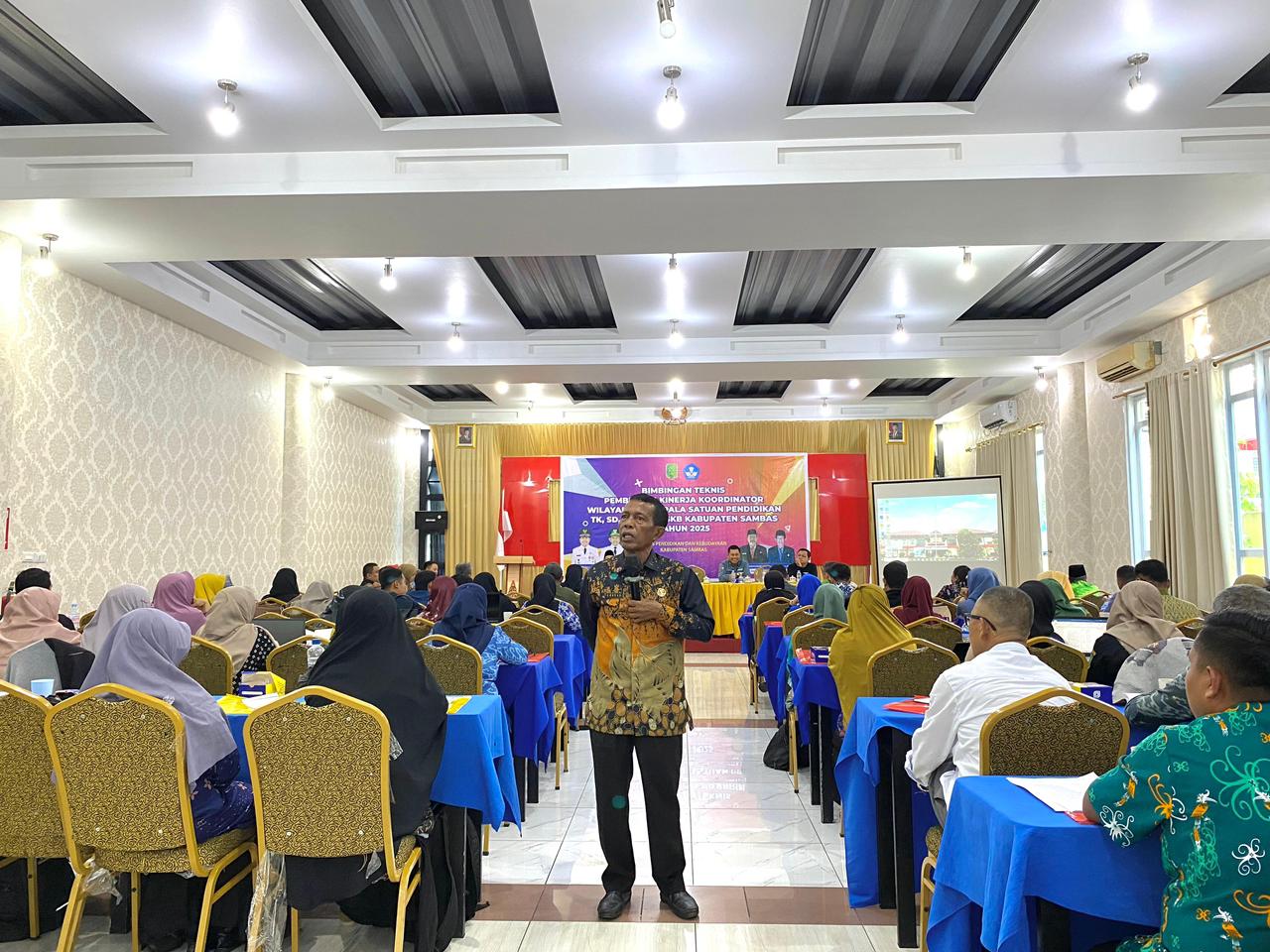 Dinas Pendidikan dan Kebudayaan Kabupaten Sambas menyelenggarakan kegiatan Bimbingan Teknis (Bimtek) Pembinaan Kinerja Koordinator Wilayah, Kepala Satuan Pendidikan TK, SD, SMP, dan SKB Tahun 2025. Kegiatan ini secara resmi dibuka oleh Kepala Dinas Pendidikan dan Kebudayaan Kabupaten Sambas, Arsyad, S.Pd., M.M, bertempat di Hotel Pantura Jaya Sambas.